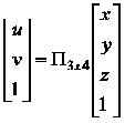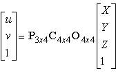 where [x y z 1]Tare the affine coordinates of the point transformed from [X Y Z 1]T and P3x4 defines the overall projection of a 3D affine point onto the image plane.