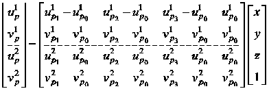 where [up vp 1]T and [upi vpi 1]T are the projections of point p and affine basis point pj, respectively, in image Ii.