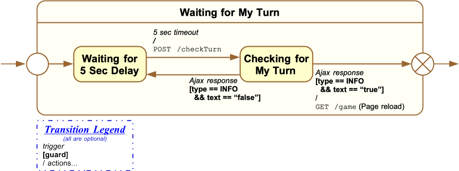 There are two possible Ajax-based actions that take place within the Waiting for My Turn composite state: